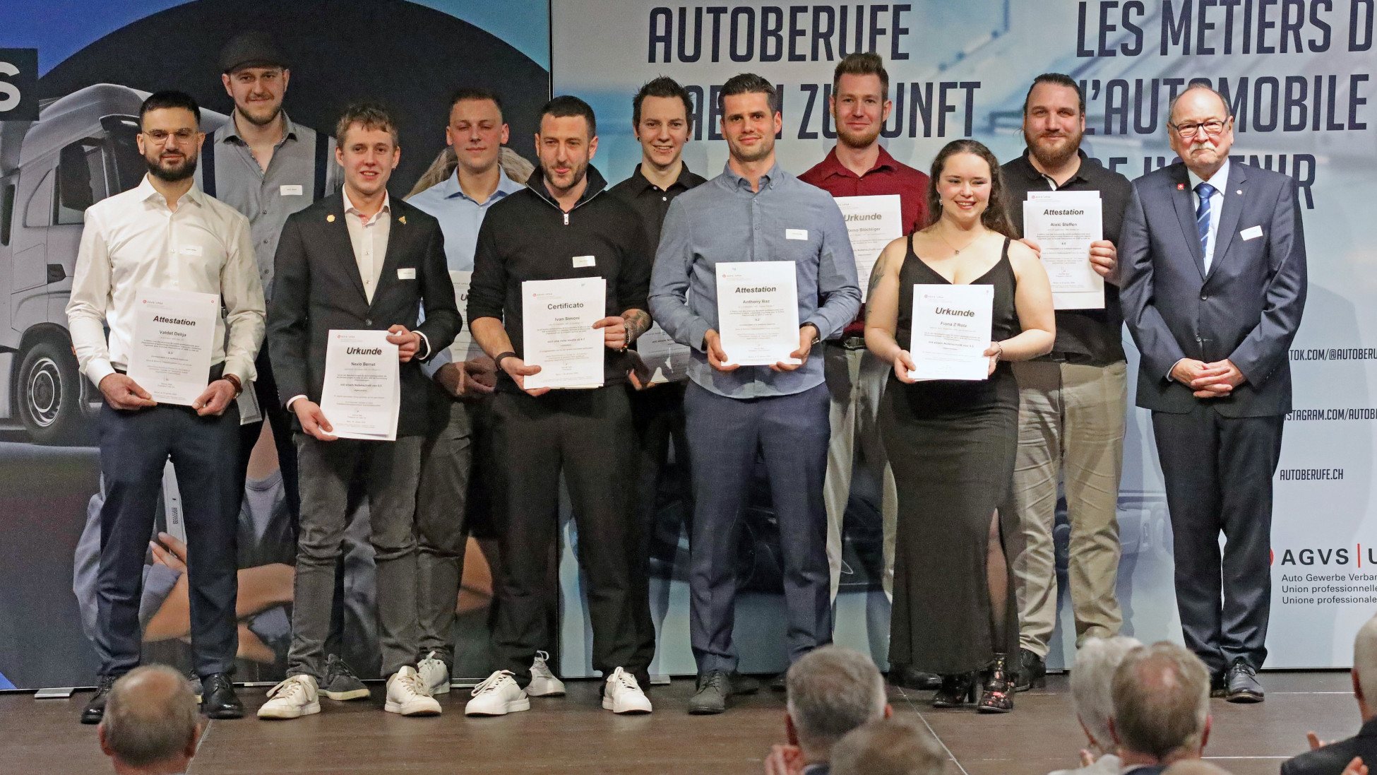Grosser Bahnhof respektive grosse Garage für 149 Absolventinnen und Absolventen aus dem Autogewerbe: In Langenthal BE nahmen Automobil-Werkstattkoordinatorinnen und -koordinatoren, Automobildiagnostikerinnen und Automobildiagnostikern mit Fachrichtung Personenwagen und Nutzfahrzeuge ihre Fachausweise entgegen – darunter auch neun Frauen.